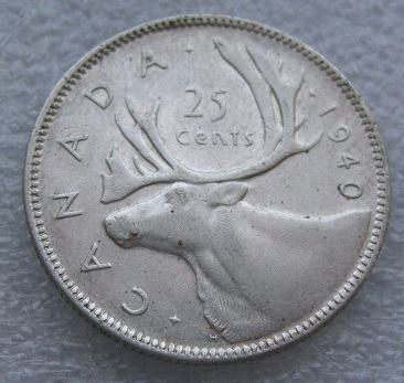 CANADA 25 CENTS 1940 Silver