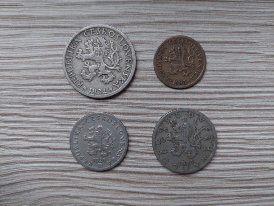 Lot sadrži četiri kovanice čehoslovačkih halera i kruna, i to: