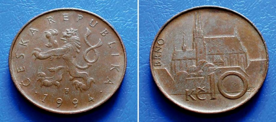 ČEŠKA CZECH REPUBLIC 10 KORUN 1994 m KM. 4 - LAV i KATEDRALA U BRNU
