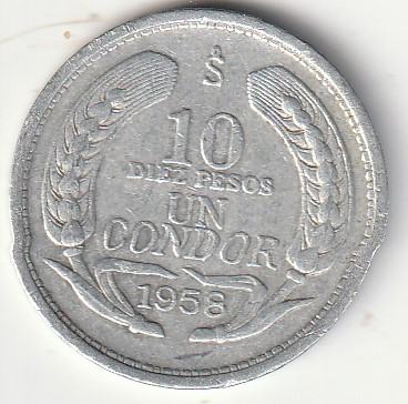 CHILE 10 PESOS UN CONDOR1958 AL 2,6 G