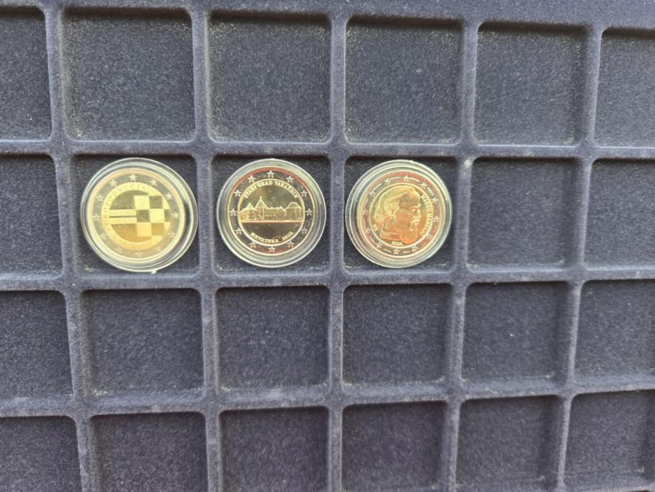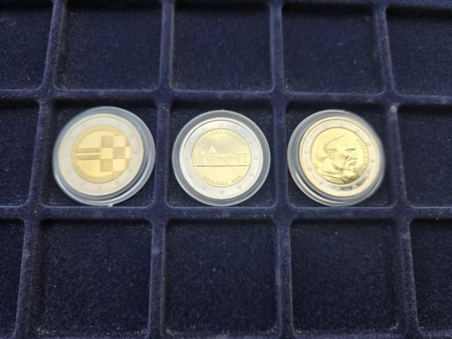 Prodajem u kompletu prve tri hrvatske kovanice RH od 2 EURA - "Članica europodručja" 2023 + “Stari grad Varaždin" 2024 + "Marko Marulić" 2024 sa zaštitnim kapsulama.