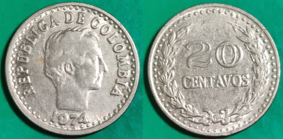 Colombia 20 centavos, 1974 ***/