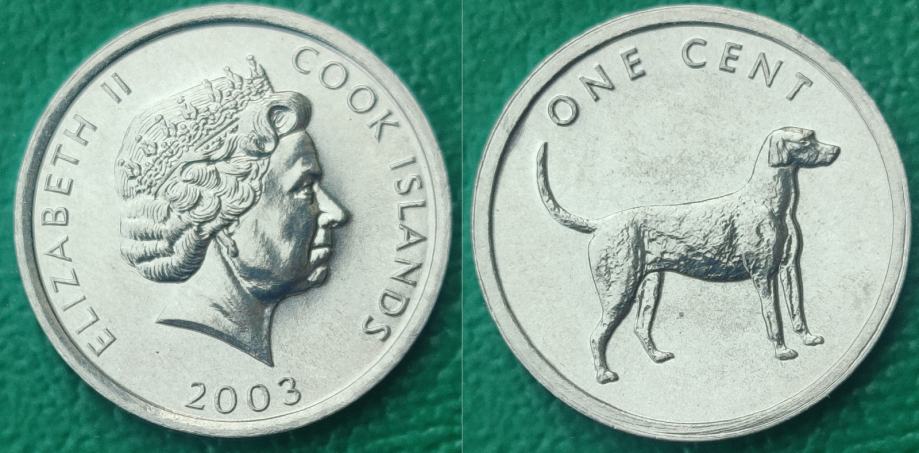 Cook Islands 1 cent, 2003 Pointer Dog UNC ***/