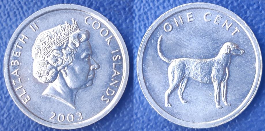 Cook Islands 1 cent, 2003 Pointer Dog UNC ***/
