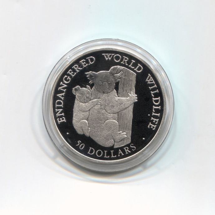 COOK ISLANDS - 50 DOLLARS, ELIZABETH II 1990, SREBRO 925/1000 KOALA