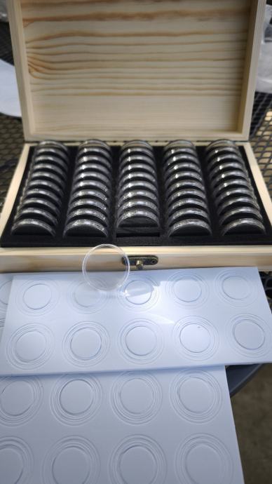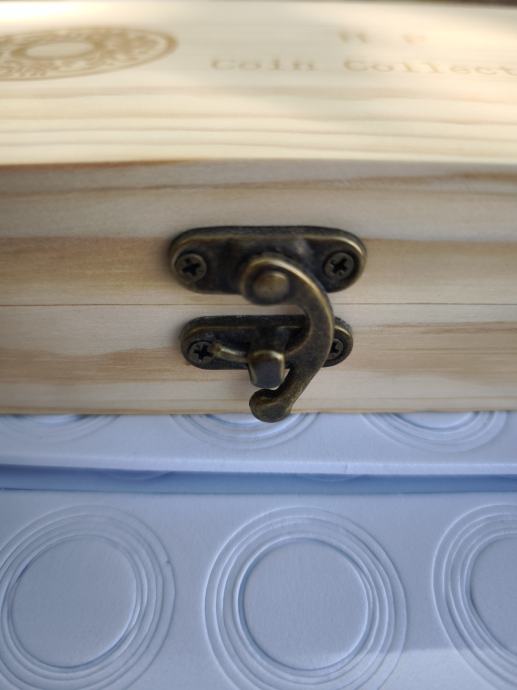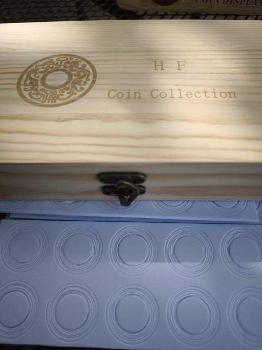 Drvena kutija sa 50 kapsula za kovanice. Idealna je za kovanice od 2 eura.