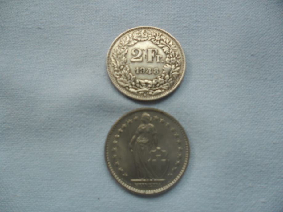 Dvije kovanice švicarskog franka u apoenima od 2 franka u odličnom stanju. Zajedno 150 kuna!