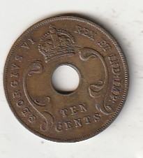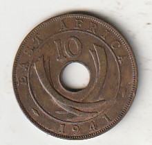 EAST AFRICA 10 CENTS 1941 BRONZA