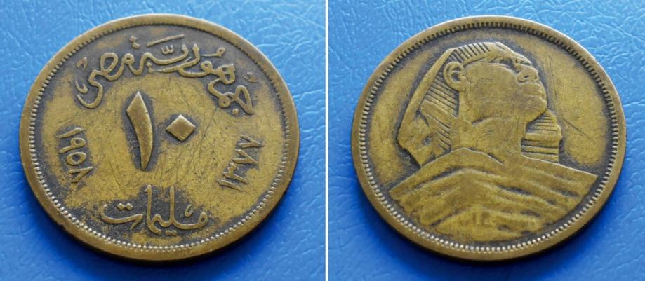 EGIPAT EGYPT 10 MILLIEMES 1958 (1377) KM. 381 - SFINGA