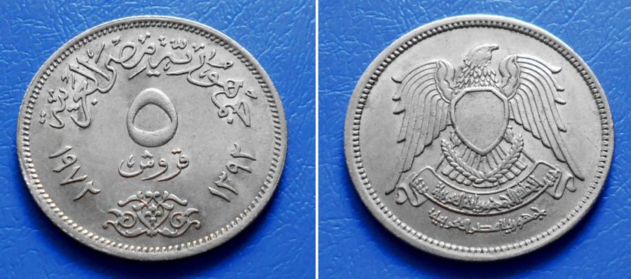 EGIPAT EGYPT 5 PIASTRES 1972 (1392) KM. A428 - GRB ARAPSKIH REPUBLIKA
