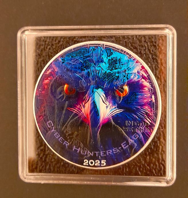 EKSTREMNO RIJETKO - Srebrnjak EAGLE Cyber Hunters 1 oz obojani (090/100)