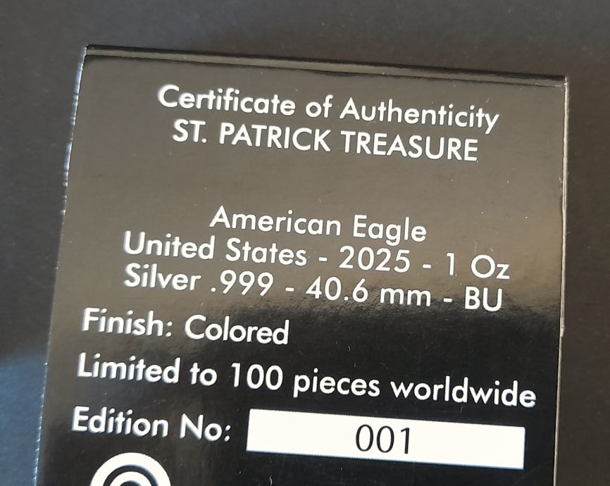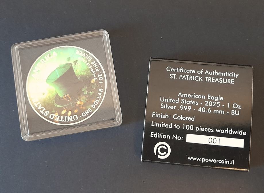 EKSTREMNO RIJETKO - Srebrnjak ST. PATRICK 1 unca obojani (001/100)