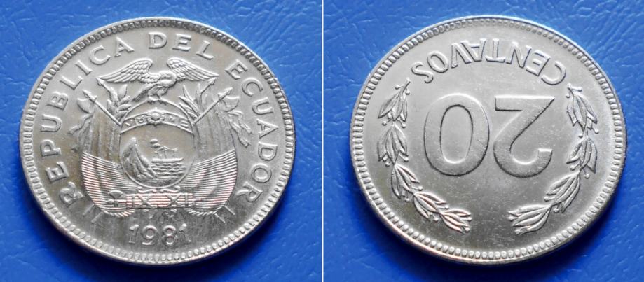 EKVADOR ECUADOR 20 CENTAVOS 1981 KM. 77.2a - NACIONALNI GRB