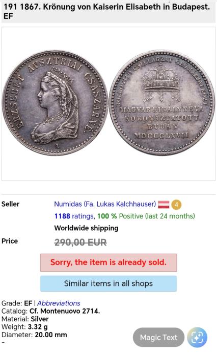 Stanje i detalji vidljivi na slikama, vrijednost kovanice/medalje između 200 € - 400 €. Kvaliteta XF. Lp