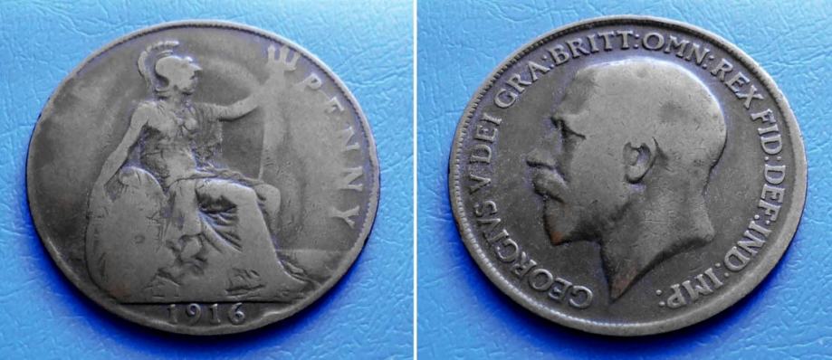 ENGLESKA GREAT BRITAIN 1 PENNY 1916 KM:810 BRITANNIA i GEORGE V