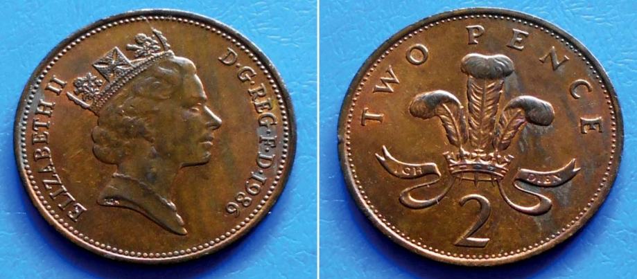 ENGLESKA GREAT BRITAIN 2 PENCE 1986 KM:936 UNC - ELIZABETH II