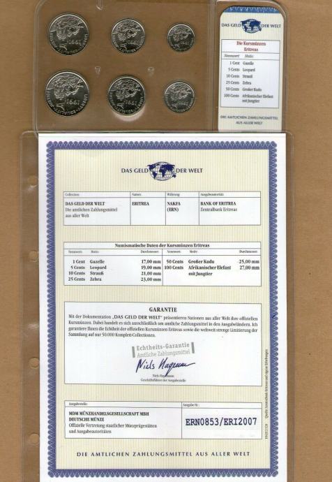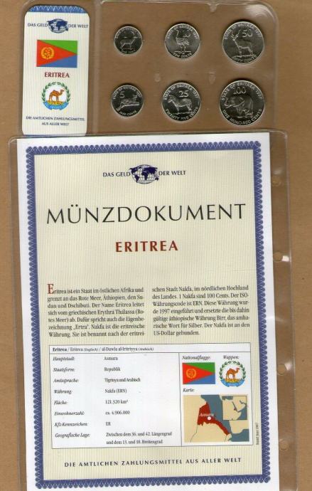 ERITREA - SET COIN 1997 IN UNC PROFF + CERTIFICATE