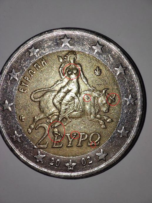 Slovo “S” označava kovnicu u kojoj je dio grčkih kovanica iz 2002. godine proizveden. Dio kovanica kovan je u inozemstvu. Slovo “S” označava Finsku kovnicu (Suomi) koja je pomogla u izradi određenih serija grčkih eura. 70.000.000 je ukupan broj kovanica sa oznakom S u opticaju, ali ovo je jedan od rijetkih primjeraka sa ovoliko grešaka pri kovanju.