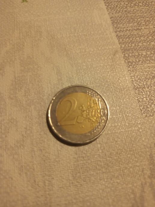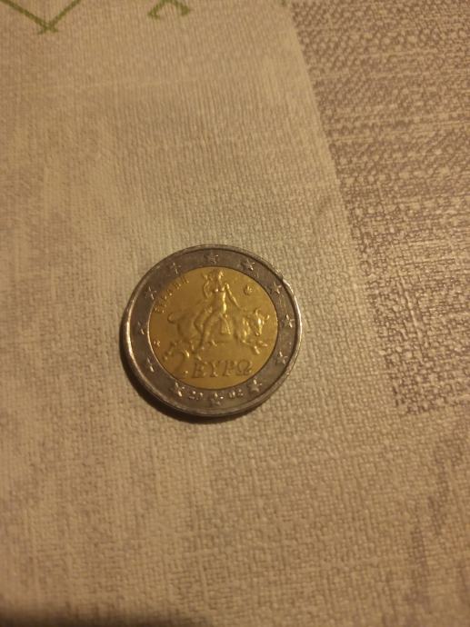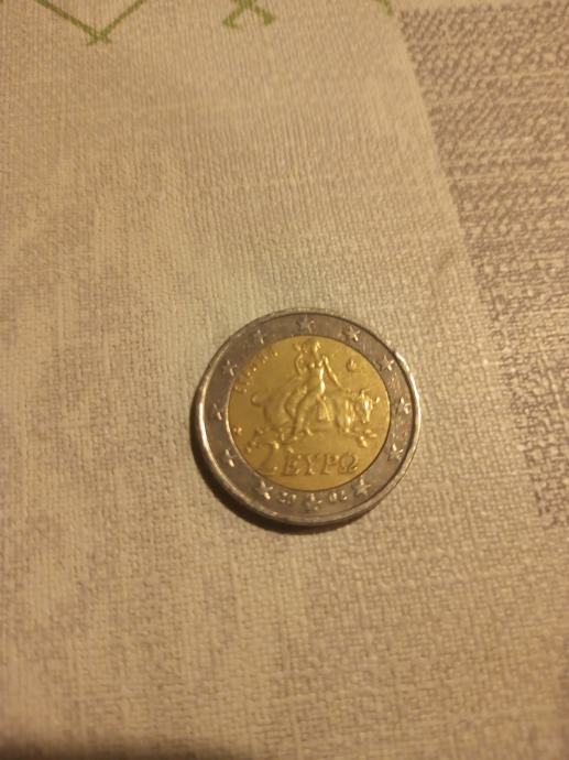 Grčka euro kovanica od 2 eura.Naličje pomaknuto u desnu stranu za 1 milimetar