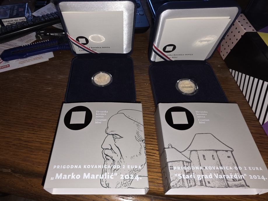 Prodajem proof izradu prigodnih Hrvatskih Euro kovanica "Stari grad Varaždin i Marko Marulić. Mogu se kupiti i pojedinačno Samo gotovina. Bez zamjena