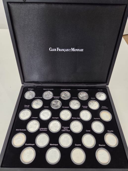 27 srebrnjaka koje predstavljaju regije u Francuskoj - iz francuske kovnice novca, Monnai de Paris, 2011.g., svaki težine 10g i nominale 10€.