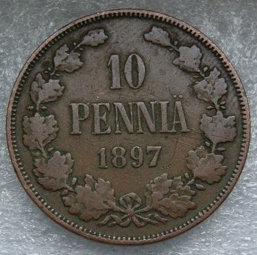 FINLAND 10 PENNIA 1897