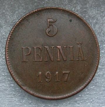 FINLAND 5 PENNIA 1917
