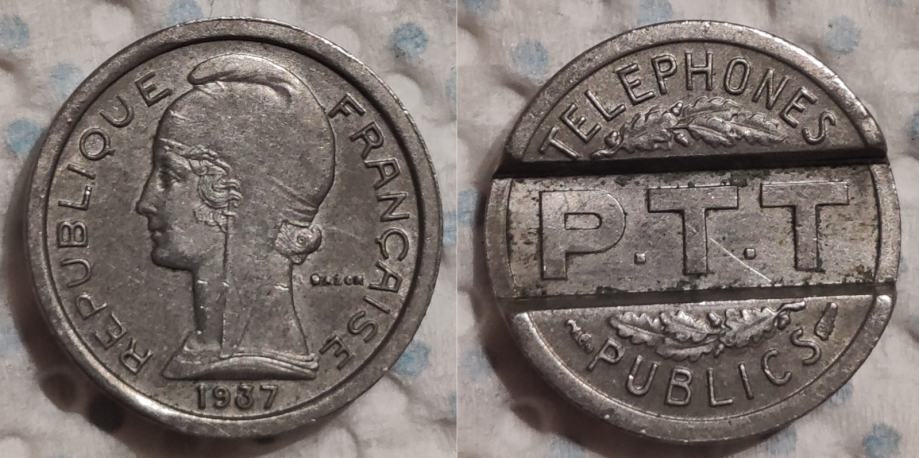 France 1937 Telephone Token - Telephones Publics P.T.T **