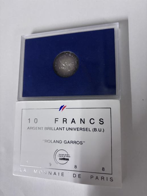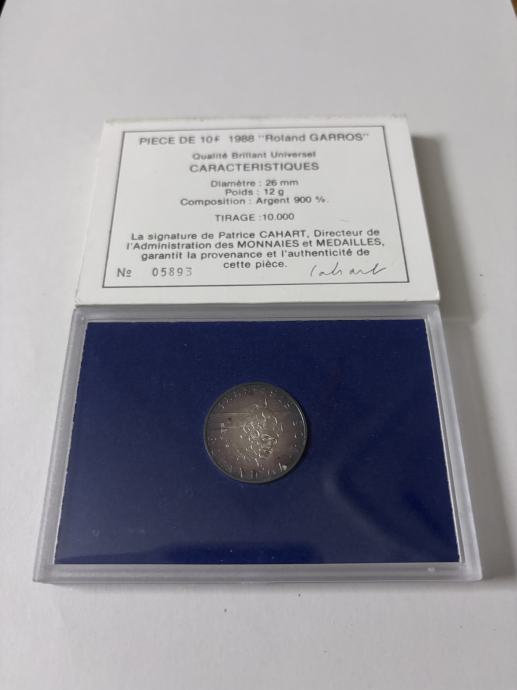 Prodajem originalnu francusku srebrnu kovanicu 10 Francs iz 1988. godine, izdanje “Roland Garros”.