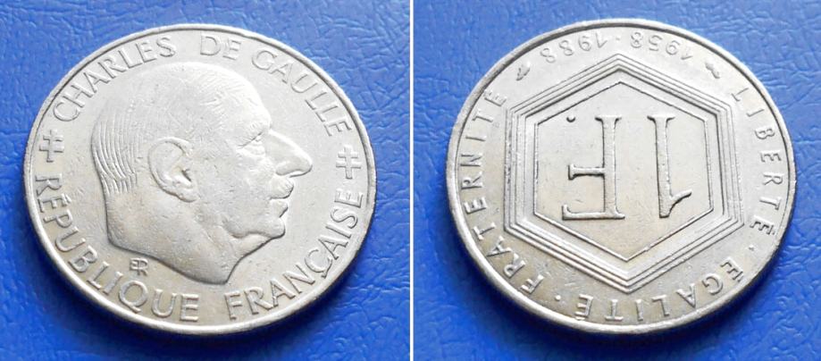 FRANCUSKA FRANCE 1 FRANC 1958 - 1988 KM: 963 - CHARLES DE GAULLE