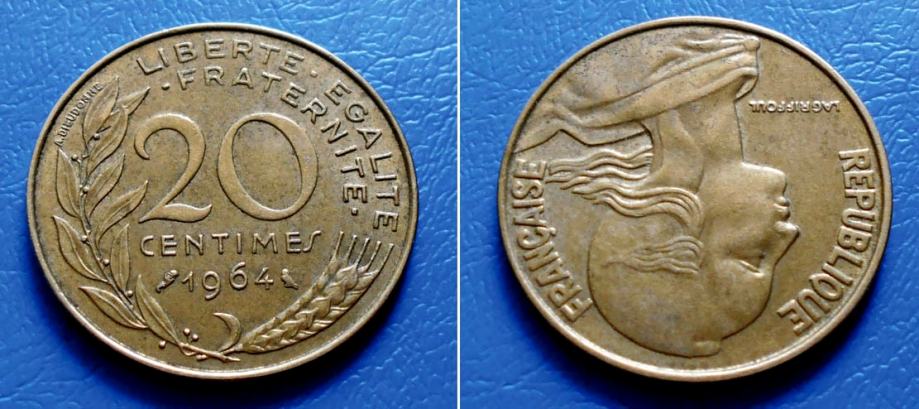 FRANCUSKA FRANCE 20 CENTIMES 1964 KM: 930 - MARIANNE