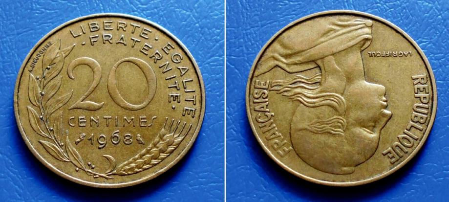 FRANCUSKA FRANCE 20 CENTIMES 1968 KM: 930 - MARIANNE