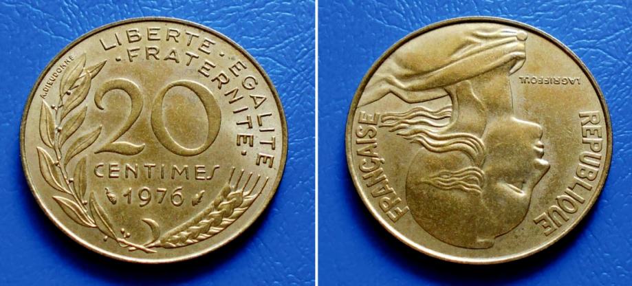 FRANCUSKA FRANCE 20 CENTIMES 1976 KM: 930 - MARIANNE