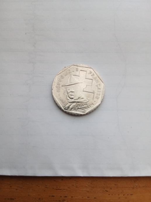 2 franka pedesetogodišnjica nacionalnog pokreta otpora Jean Moulin debljina 1,7mm diametar 26,5mm težina 7,5 g nikl KM 1062 stanje C.Zamjene nisu opcija.