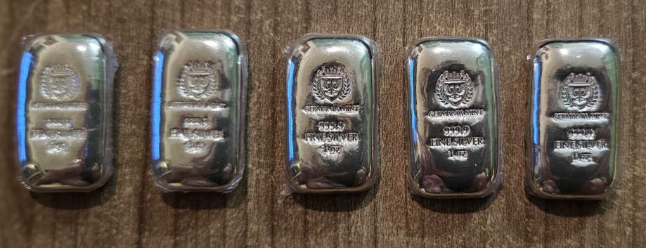 Germania Mint 1 Oz - rijetko - 5 komada srebro poluga