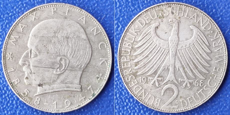 Germany 2 mark, 1968 Max Planck "G" - Karlsruhe ***/