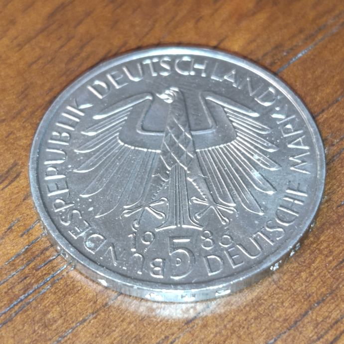 Germany, 5 Deutsche Mark 1986 D, Heidelberg University