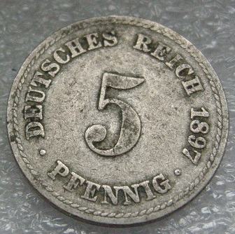 GERMANY-EMPIRE 5 PFENNIG 1897 A