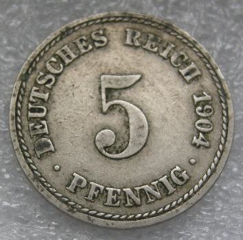GERMANY-EMPIRE 5 PFENNIG 1904A