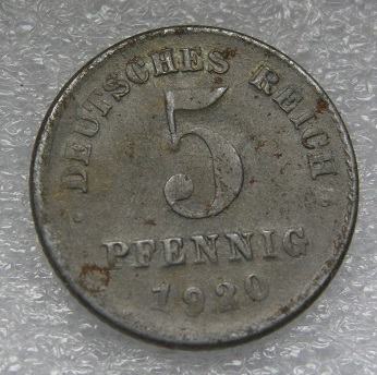 GERMANY-EMPIRE 5 PFENNIG 1920D