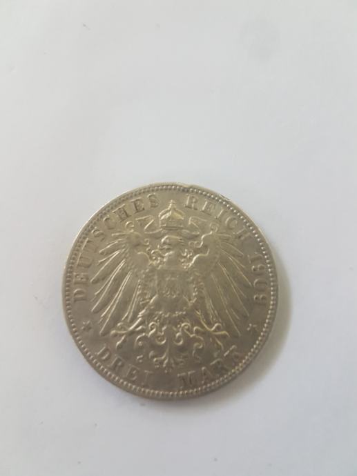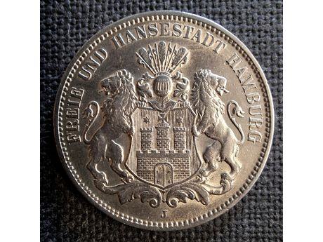 Germany - Hamburg - 3 Mark 1909 - , Srebro 0.9, 16,7 gr