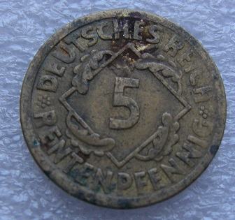 GERMANY, WEIMAR REPUBLIC 5 RENTENPFENNIG 1924F