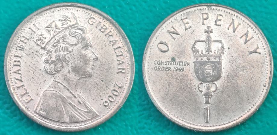 Gibraltar 1 penny, 2006 Mace of the House of Assembly ***/