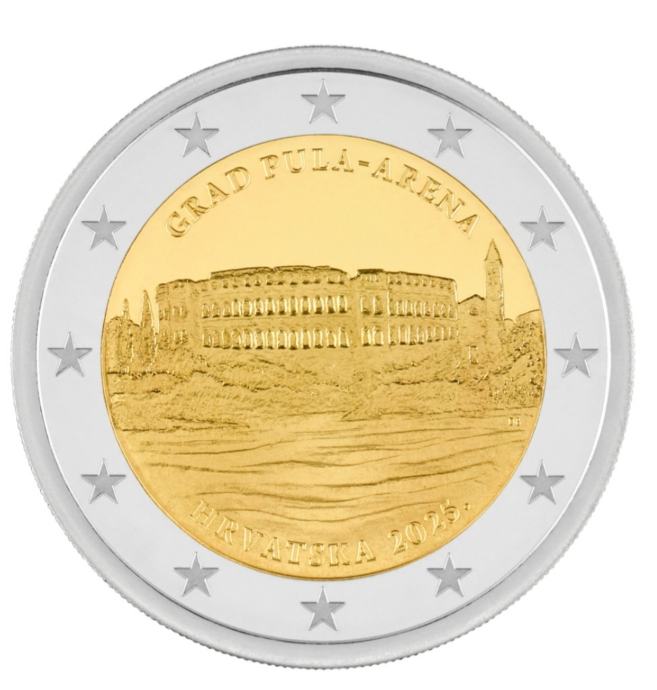 Hrvatska narodna banka pustila je u optjecaj prigodnu kovanicu od 2 eura iz serije „Hrvatski gradovi”. Na kovanici je prikazana pulska Arena – jedan od najpoznatijih antičkih spomenika u Hrvatskoj. Ovaj prepoznatljivi simbol grada Pule, iznimne povijesne i kulturne važnosti za Hrvatsku i svijet, nekoć je bio i jedan od glavnih motiva na naličju novčanice od 10 kuna.