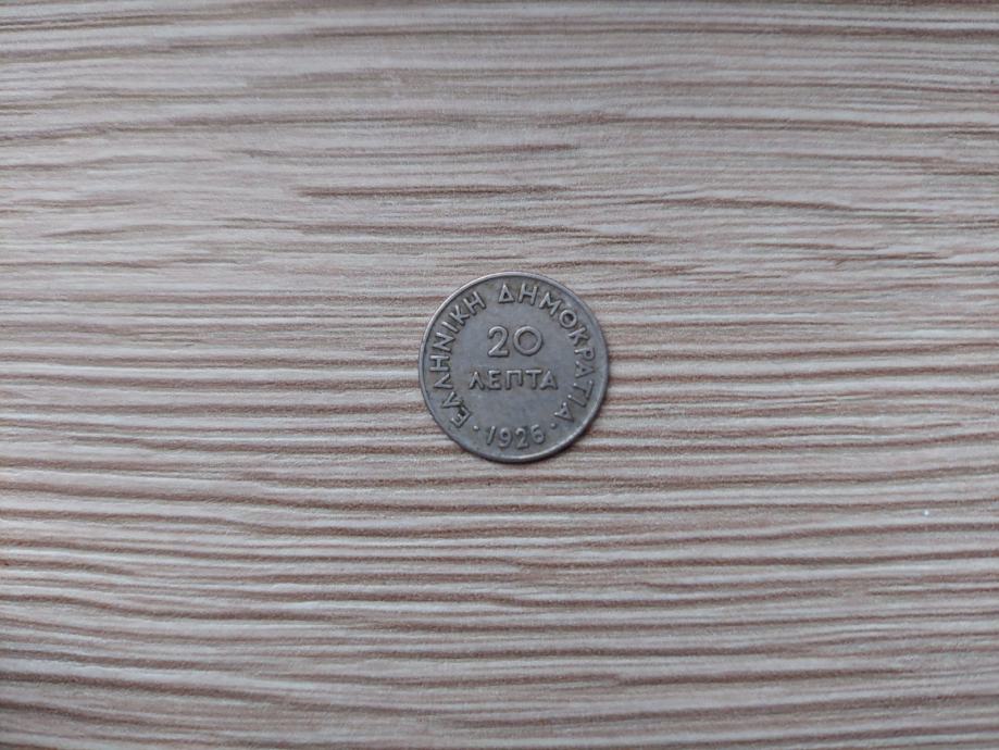 Radi se o kovanici 20 grčkih lepta iz 1926. g. (KM 67).