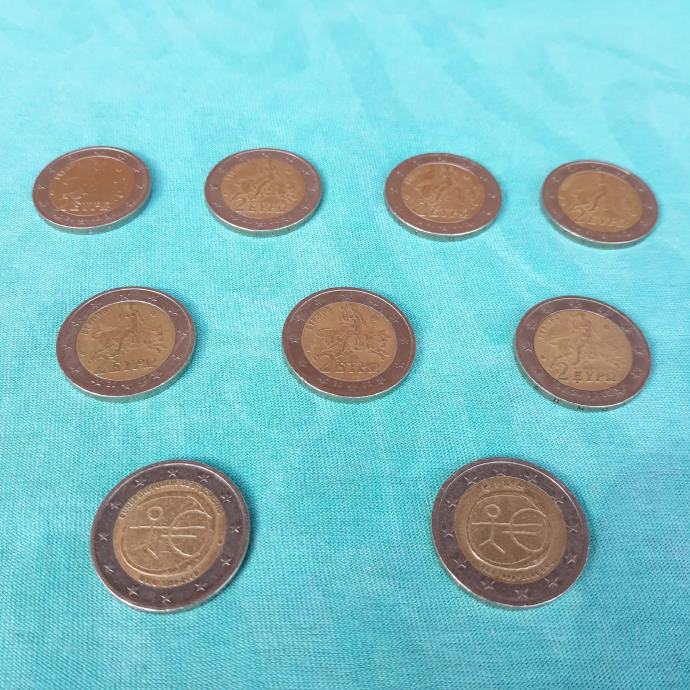 STICKMANI I GRČKE KOVANICE OD 2 EURA ...9 KOMADA... ODLIČNO OČUVANE.