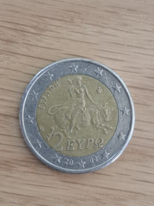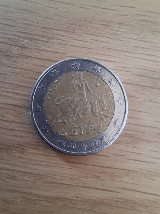 Grčka kovanica od 2€. Godište 2002. Greška slovo S utisnut u zvijezdu.