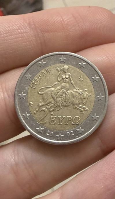 Prodaje se jako rijetka kovanica od 2 eura 2002. godina Grčka sa slovom "S" utisnutim u zvijezdi, necentriranom te smanjenom brojkom godine i većih grudi na tijelu Božice što su sve greške prilikom kovanja.