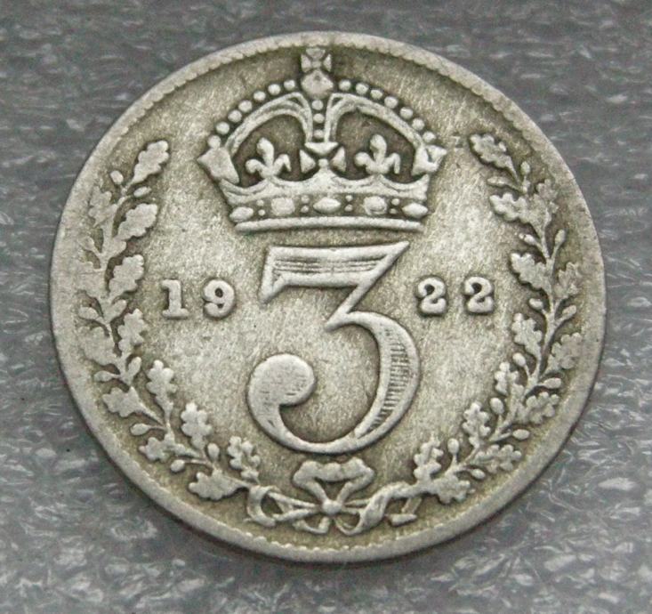 GREAT BRITAIN 3 PENCE 1922 Silver