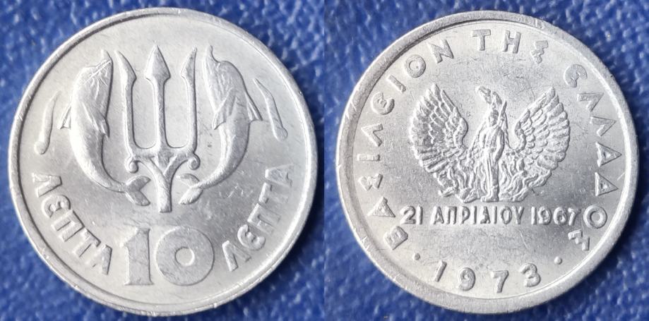 Greece 10 lepta, 1973 ΒΑΣΙΛΕΙΟΝ ΤΗΣ ΕΛΛΑΔΟΣ RIJETKO ***/ 2,00 EURO